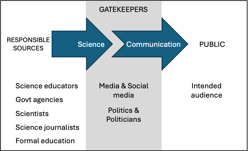 The social role of modern scientists increasingly requires scientists to communicate effectively with the public. Yet, little research has examined how this expectation is reflected in formal chemistry education, professional training, or scientific practice. Similarly, limited attention has been given to how scientists perceive themselves in the role of science communicators (role identity). Our preliminary research reveals dissonances between the idealized and perceived models of science communication held by STEM students and instructors. In their idealized model, they see themselves as central figures in public science discourse; however, they perceive other agents’ influence (e.g. politicians, influencers) to be more significant. In addition, despite acknowledging a responsibility to communicate, many scientists possess only a rudimentary understanding of the nature of science communication and lack knowledge of effective strategies beyond generic performative skills (e.g. presentation skills). These gaps present significant obstacles to meaningful engagement with the public.