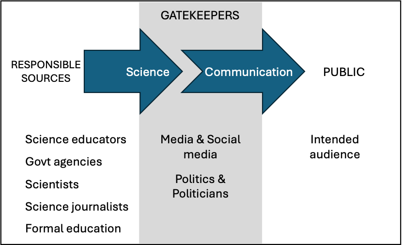 The social role of modern scientists increasingly requires scientists to communicate effectively with the public. Yet, little research has examined how this expectation is reflected in formal chemistry education, professional training, or scientific practice. Similarly, limited attention has been given to how scientists perceive themselves in the role of science communicators (role identity). Our preliminary research reveals dissonances between the idealized and perceived models of science communication held by STEM students and instructors. In their idealized model, they see themselves as central figures in public science discourse; however, they perceive other agents’ influence (e.g. politicians, influencers) to be more significant. In addition, despite acknowledging a responsibility to communicate, many scientists possess only a rudimentary understanding of the nature of science communication and lack knowledge of effective strategies beyond generic performative skills (e.g. presentation skills). These gaps present significant obstacles to meaningful engagement with the public.